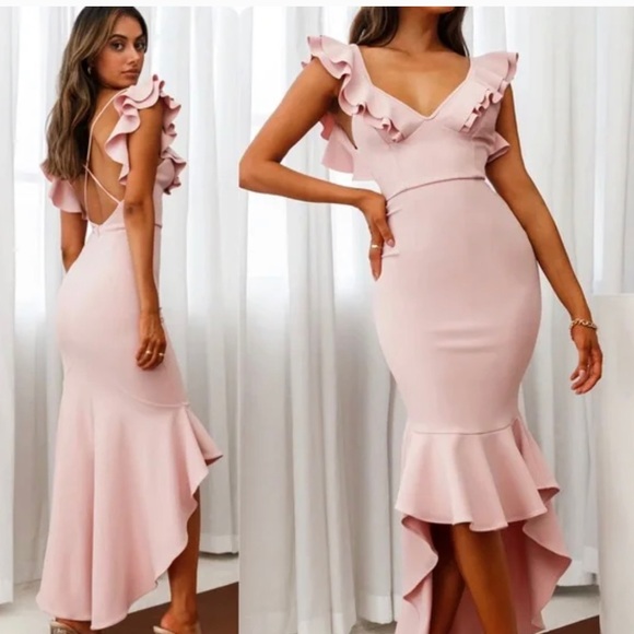 Selfie Leslie Dresses Selfie Leslie Pink Open Back Ruffled Sexy Dress Poshmark